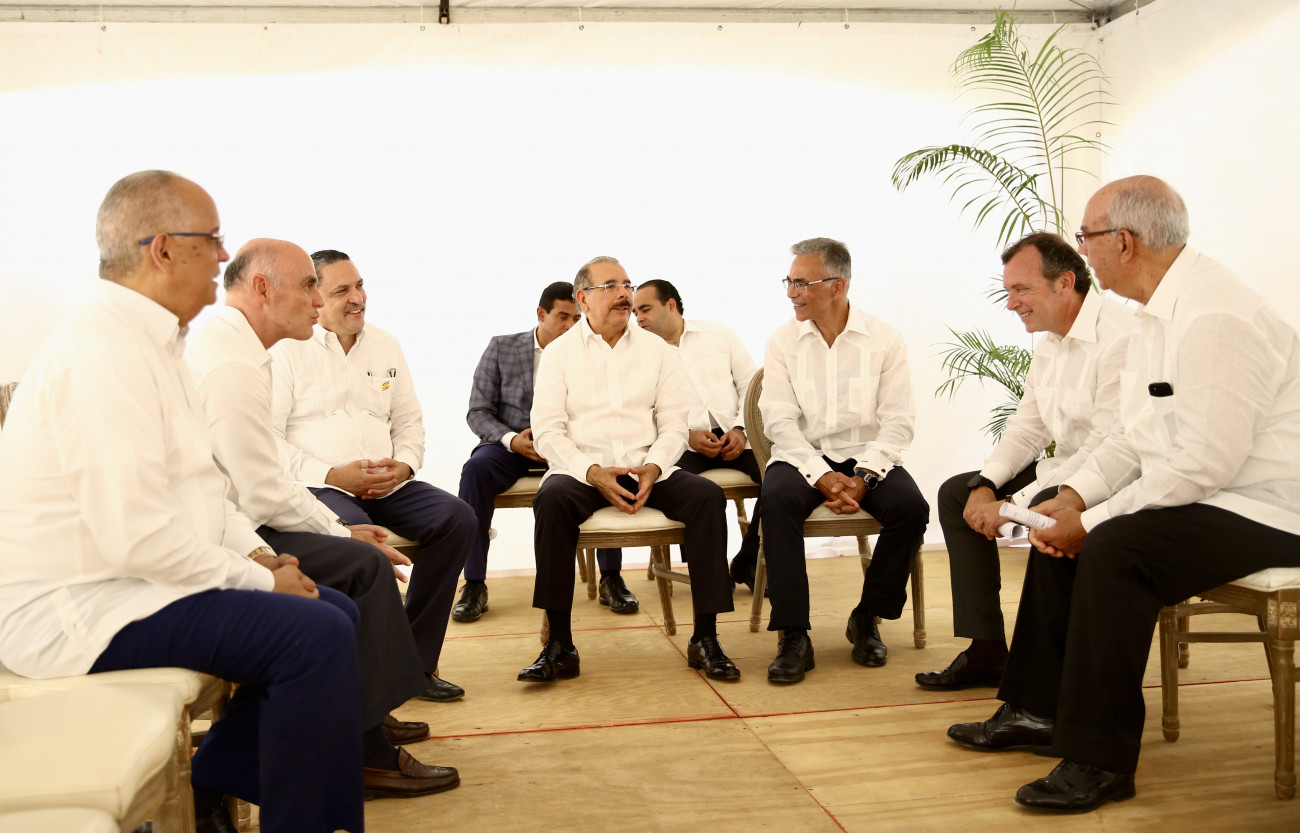 El presidente Danilo Medina durante encuentro previo al acto, con los inversionistas, en un ambiente amigable y relajado, sobre el potencial que tiene el país en materia de energía renovable.