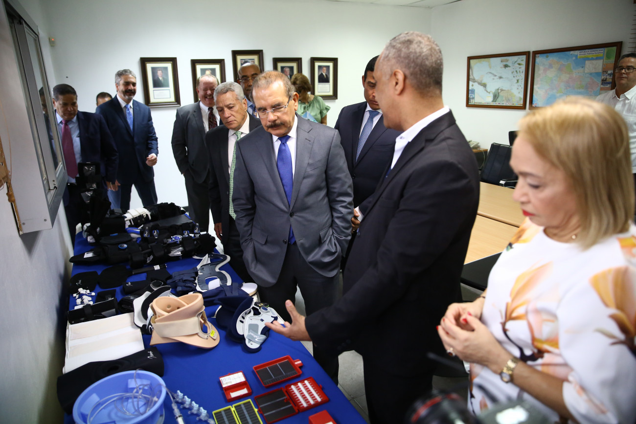 Recorrido del presidente Danilo Medina y ejecutivos de la empresa DeRoyal Intercontinental S.R.L, por sus instalaciones en la Zona Franca Pisano, Santiago.