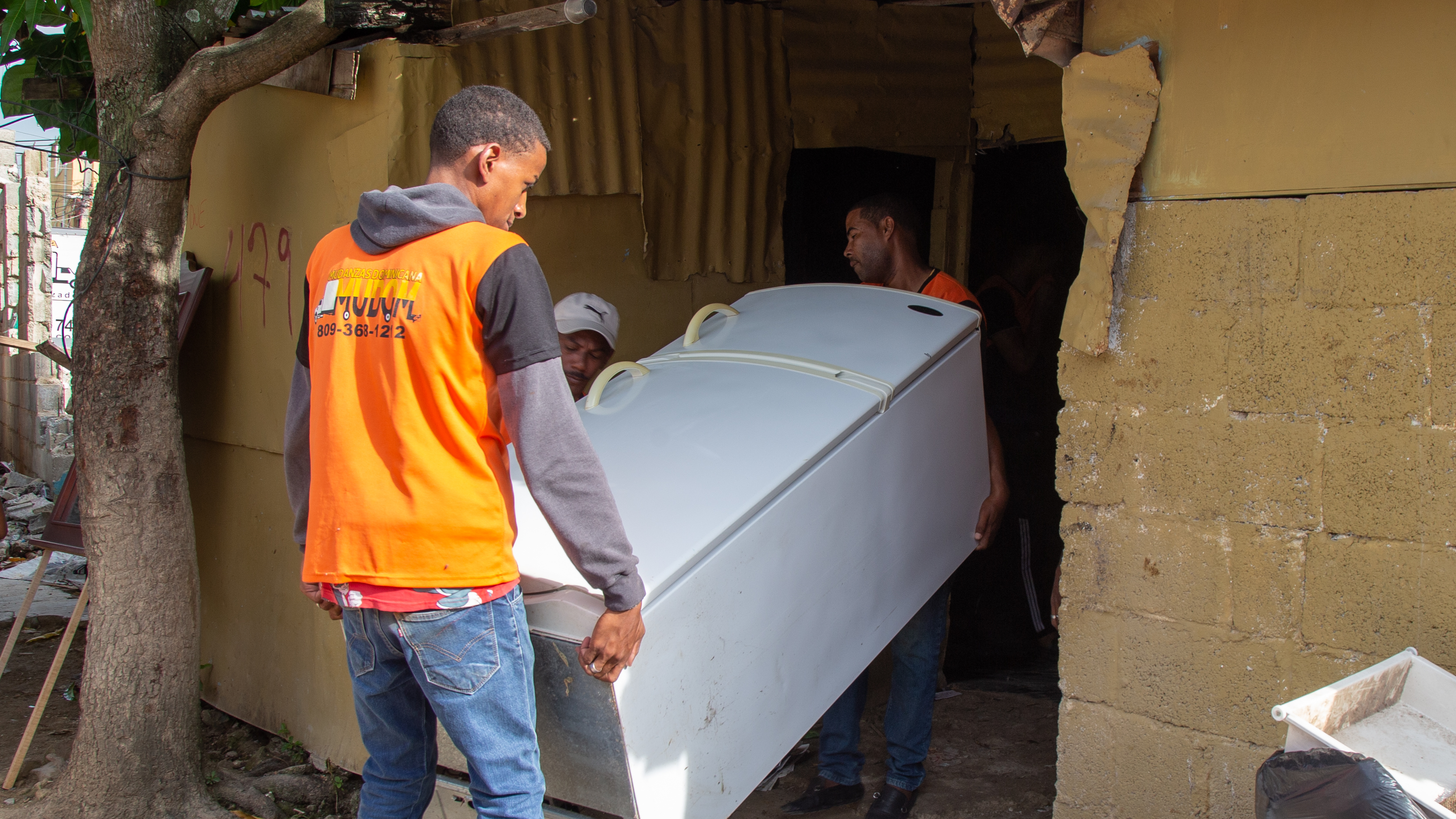 Beneficiaros del proyecto de transformación urbana Nuevo Domingo Savio, en La Ciénaga, lucen felices durante su traslado de la zona de alto riesgo.