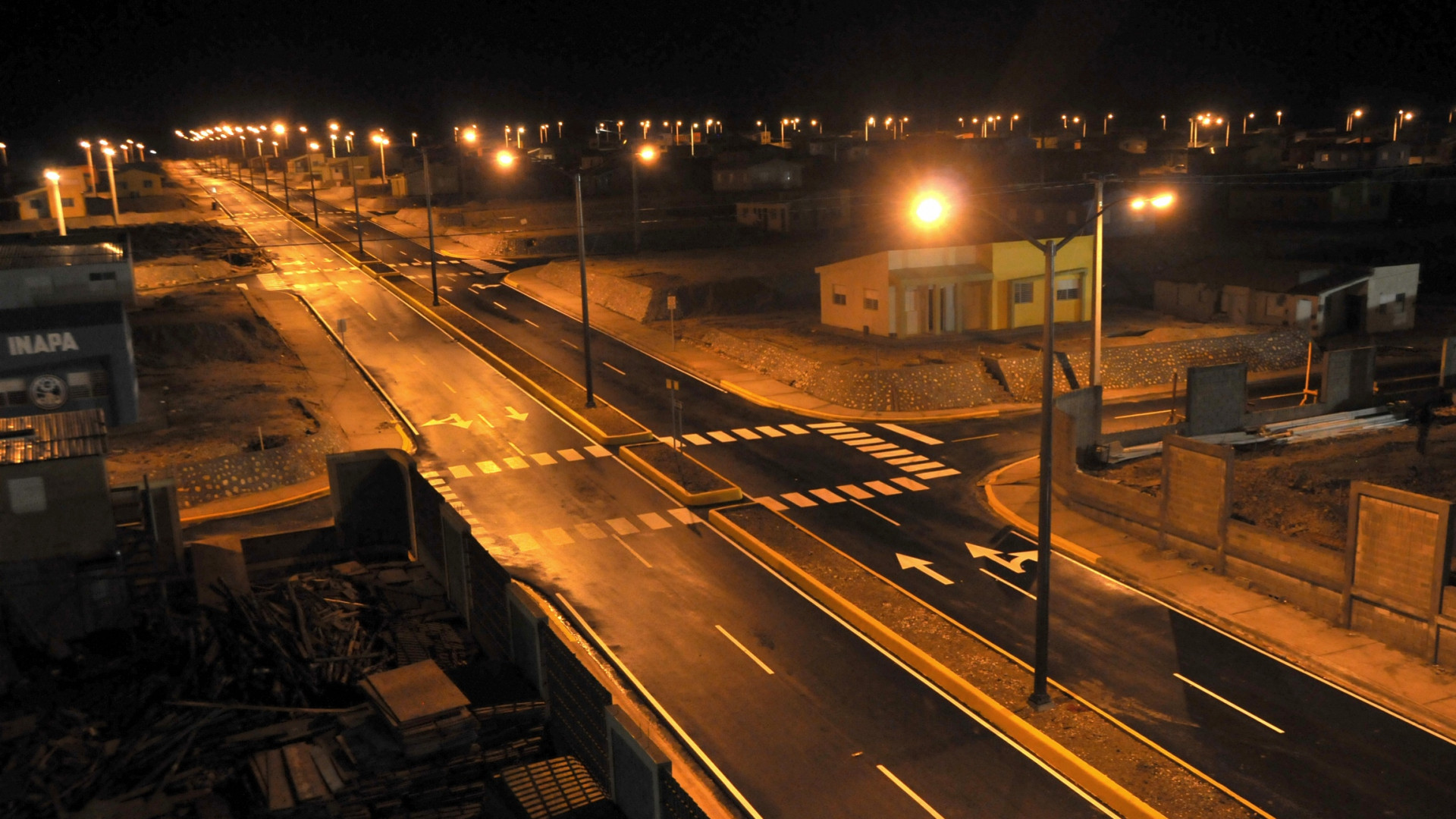 Gráfica de las nuevas calles asfaltadas y ahora iluminadas con energía eléctrica del complejo habitacional Nuevo Boca de Cachón, que muestra el empeño de todos los técnicos y empleados de EDESUR para traer la luz a esta zona.
