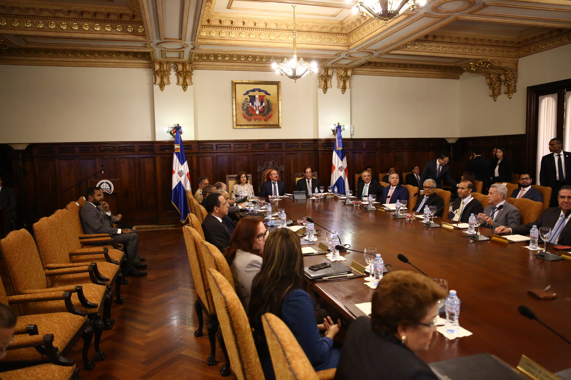 Consejo de Ministros de la República, encabezado por el presidente Danilo Medina, durante sesión de trabajo en el Palacio Nacional. Foto: Romelio Montero/Presidencia República Dominicana Enlace noticia: presidencia.gob.do/noticias/presupuesto-2020-mantiene-con... Video YouTube: www.youtube.com/watch?v=p4MBkisKEYA Video relacionado: www.youtube.com/watch?v=mLvu0O34Zok