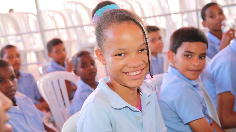 Este es el rostro de la alegría que embarga a los alumnos de las diferentes localidades donde fueron inaugurados los planteles escolares por el presidente Danilo Medina.