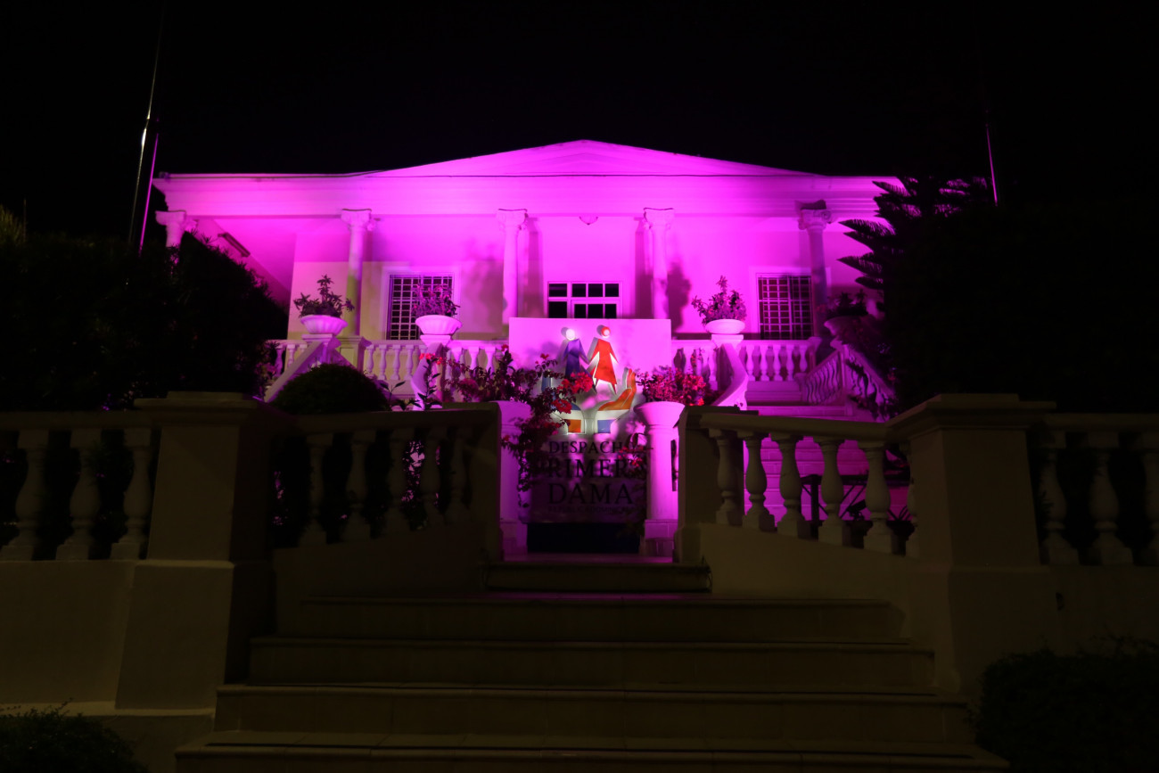Por séptimo año consecutivo, el edificio Despacho de la Primera Dama se ilumina de rosado durante octubre, con ocasión del Mes de la Sensibilización sobre el Cáncer de Mama.