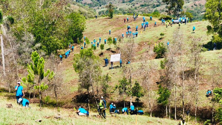 Participantes en las labores de reforestación en La Sierra y la Línea Noroeste, que realiza la Comisión Presidencial para el Reordenamiento de la Cuenca del Río Yaque del Norte (CRYN), que preside el Ministerio de la Presidencia.