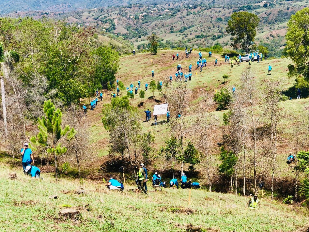 Participantes en las labores de reforestación en La Sierra y la Línea Noroeste, que realiza la Comisión Presidencial para el Reordenamiento de la Cuenca del Río Yaque del Norte (CRYN), que preside el Ministerio de la Presidencia.