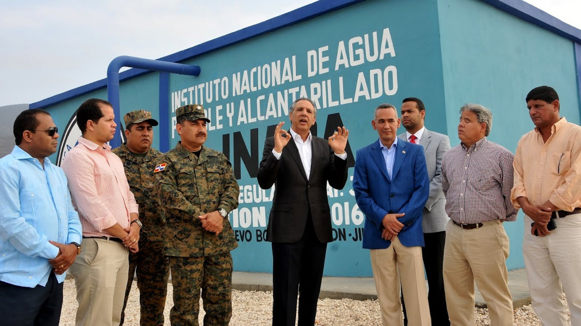 Participación del ministro Administrativo de la Presidencia, José Ramón Peralta al recibir el acueducto del complejo habitacional Nuevo Boca de Cachón, ubicado en la provincia Independencia. Figuran además, Alberto Holguín, director de INAPA; Rafael Luna Pichirilo, mayor general de las Fuerzas Armadas, entre otros.
