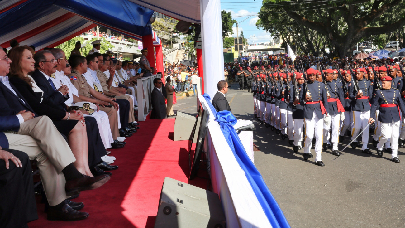 Desfile cívico-militar efectuado hoy en el área monumental de la ciudad de Santiago, encabezado por el presidente Medina junto a las principales autoridades militares y distinguidas personalidades presentes, como parte de los actos conmemorativos por el 170 aniversario de la Batalla del 30 de Marzo.