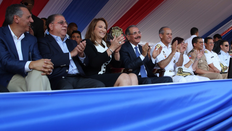 A la izquierda, ministro de la presidencia, José Ramón Peralta; ministro de Interior y Policía, José Ramón Fadul; la gobernadora de Santiago, Aura Toribio, el presidente Danilo Medina; el ministro de Defensa, almirante Sigfrido Pared Pérez; el jefe de la Policía Nacional, mayor general Manuel Castro Castillo, entre otros presentes durante el Desfile Cívico-militar-policial y estudiantil con motivo del 170 aniversario de la Batalla del 30 de marzo de 1844.