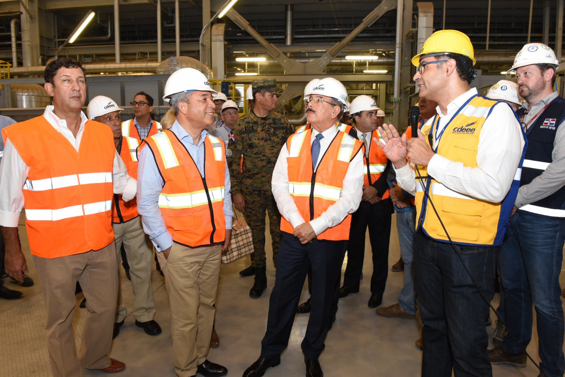 El presidente Danilo Medina con funcionarios de la Central Termoeléctrica Punta Catalina, donde dejó sincronizada la segunda unidad, en proceso de pruebas.