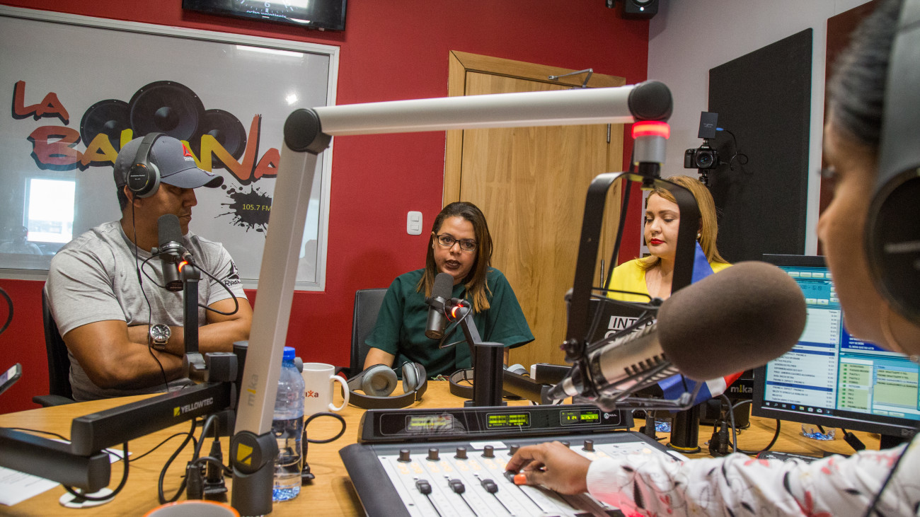 Participación de Paola Chaljub y Chianela Martínez, productoras de la DICOM, durante entrevista en el programa radial El Mañanero, transmitido por la emisora La Bakana 105.7 FM.