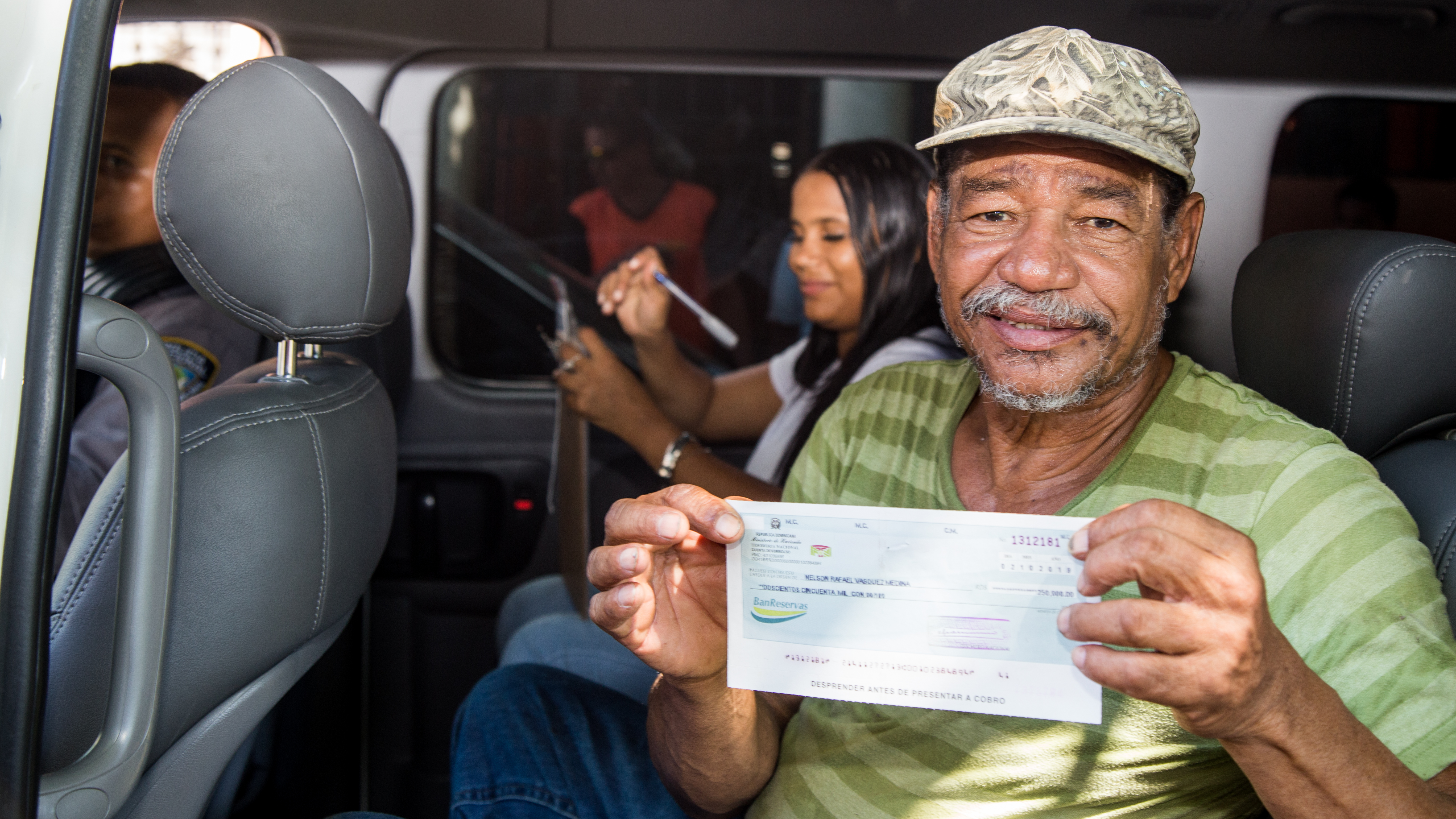 En otro cómodo vehículo, la familia acompaña al camión hacia el lugar que han escogido como su nueva residencia.