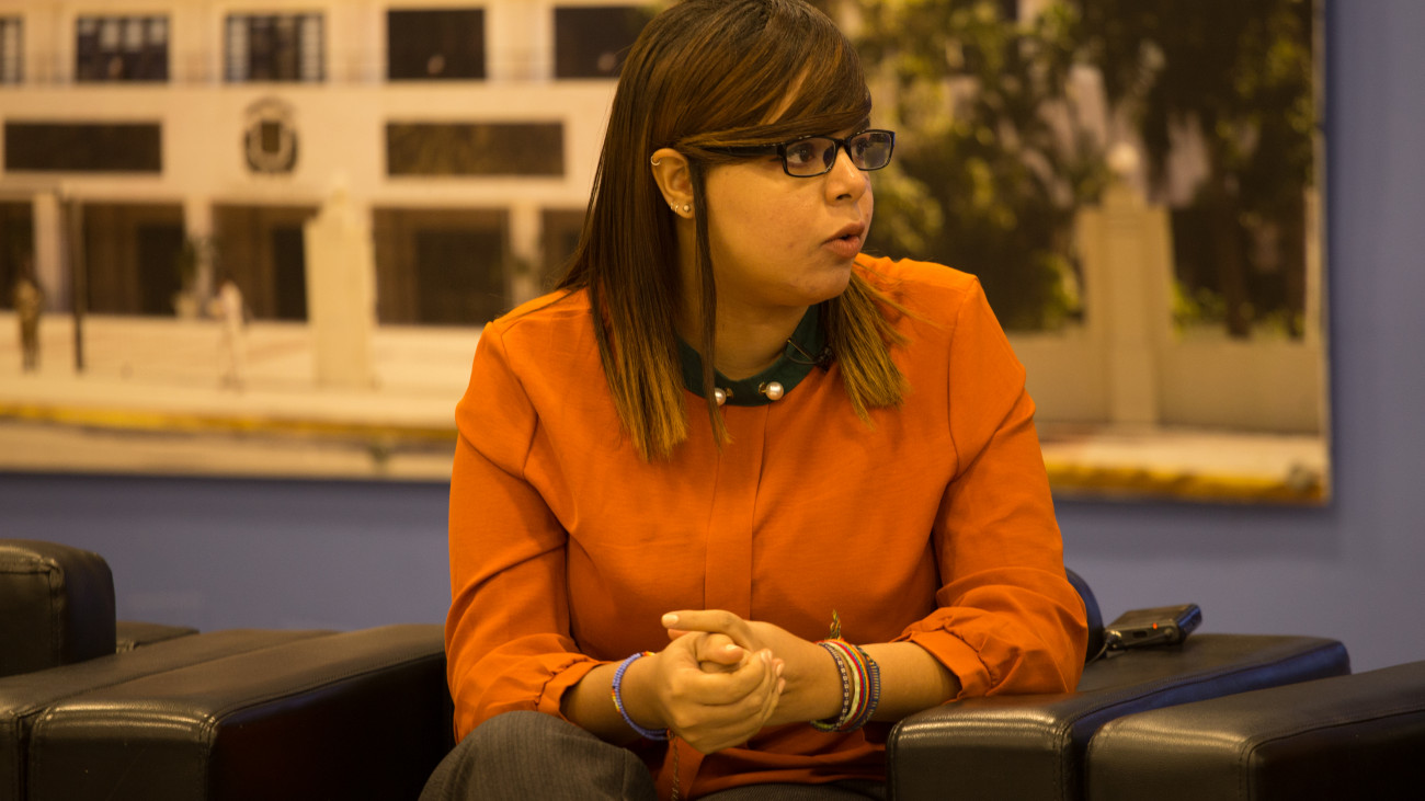 Chianela Martínez, productora de la DICOM, durante la entrevista.