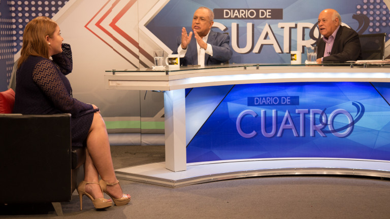 Paola Chaljub, productora de la Dirección General de Comunicación de la Presidencia (DICOM), durante una entrevista en el programa matinal Diálogo de Cuatro, transmitido por RNN canal 27.