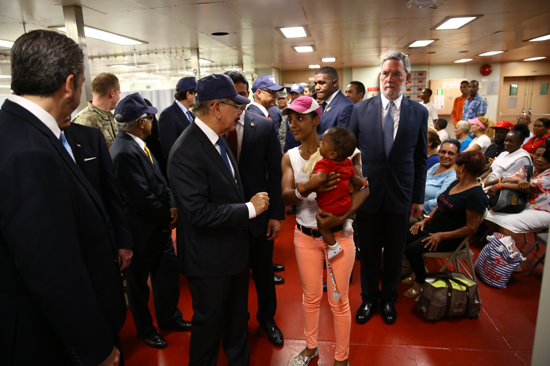 Danilo Medina compartió, además, brevemente con los dominicanos y dominicanas que reciben asistencia médica en el barco.