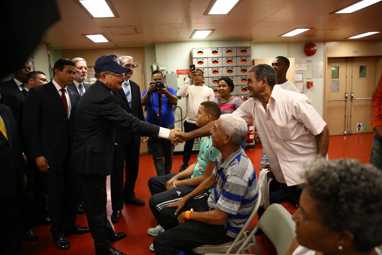 Danilo Medina compartió, además, brevemente con los dominicanos y dominicanas que reciben asistencia médica en el barco.