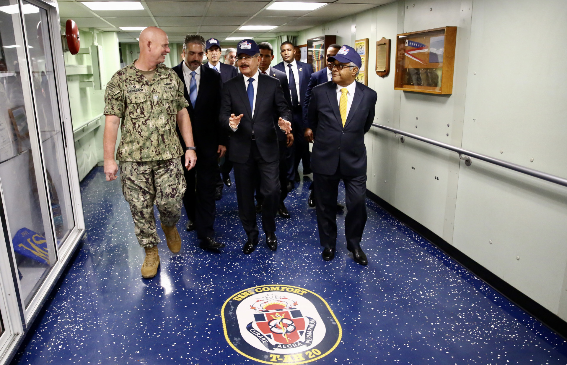 El presidente Danilo Medina visitó hoy el Buque Hospital Military Sealift Command USNS Comfort de Estados Unidos, cuya misión de asistencia médica en la República Dominicana inició el pasado miércoles 16 y se extenderá hasta el próximo lunes 21.