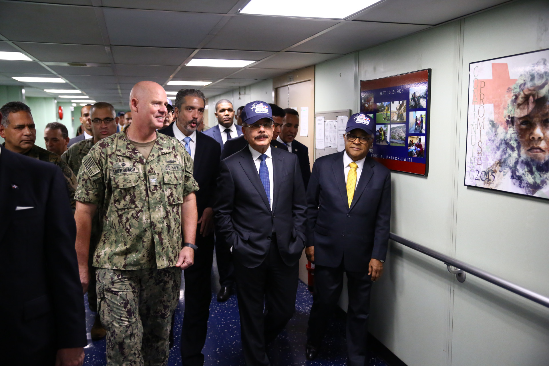 Recorrido del presidente Danilo Medina acompañado del capitán del USNS Comfort, capitán Brian J. Debold, y por la embajadora de los Estados Unidos en el país, Robin Bernstein.