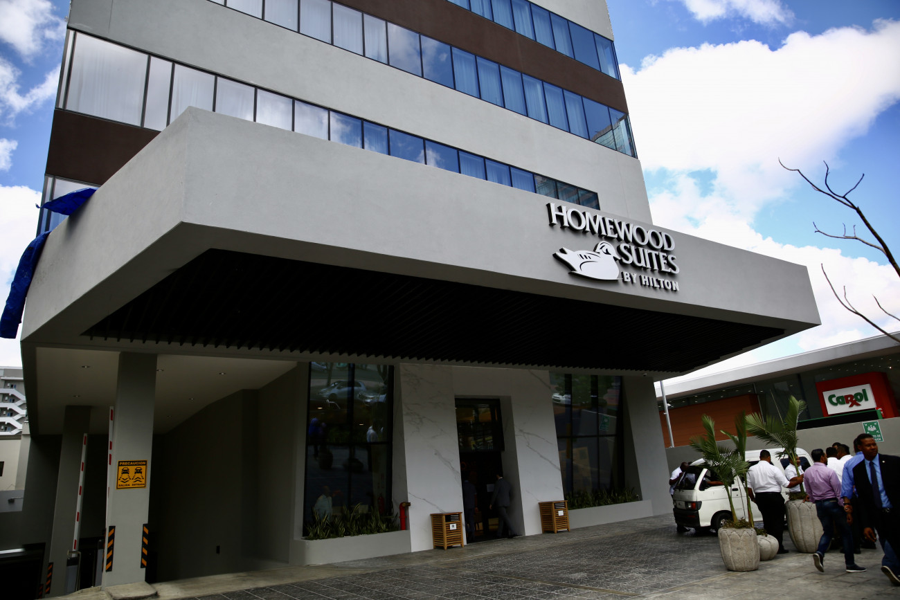 Vista exterior del Hotel Homewood Suites by Hilton, inaugurado hoy en acto encabezado por el presidente Danilo Medina y ejecutivos del grupo inversionista Robledo.