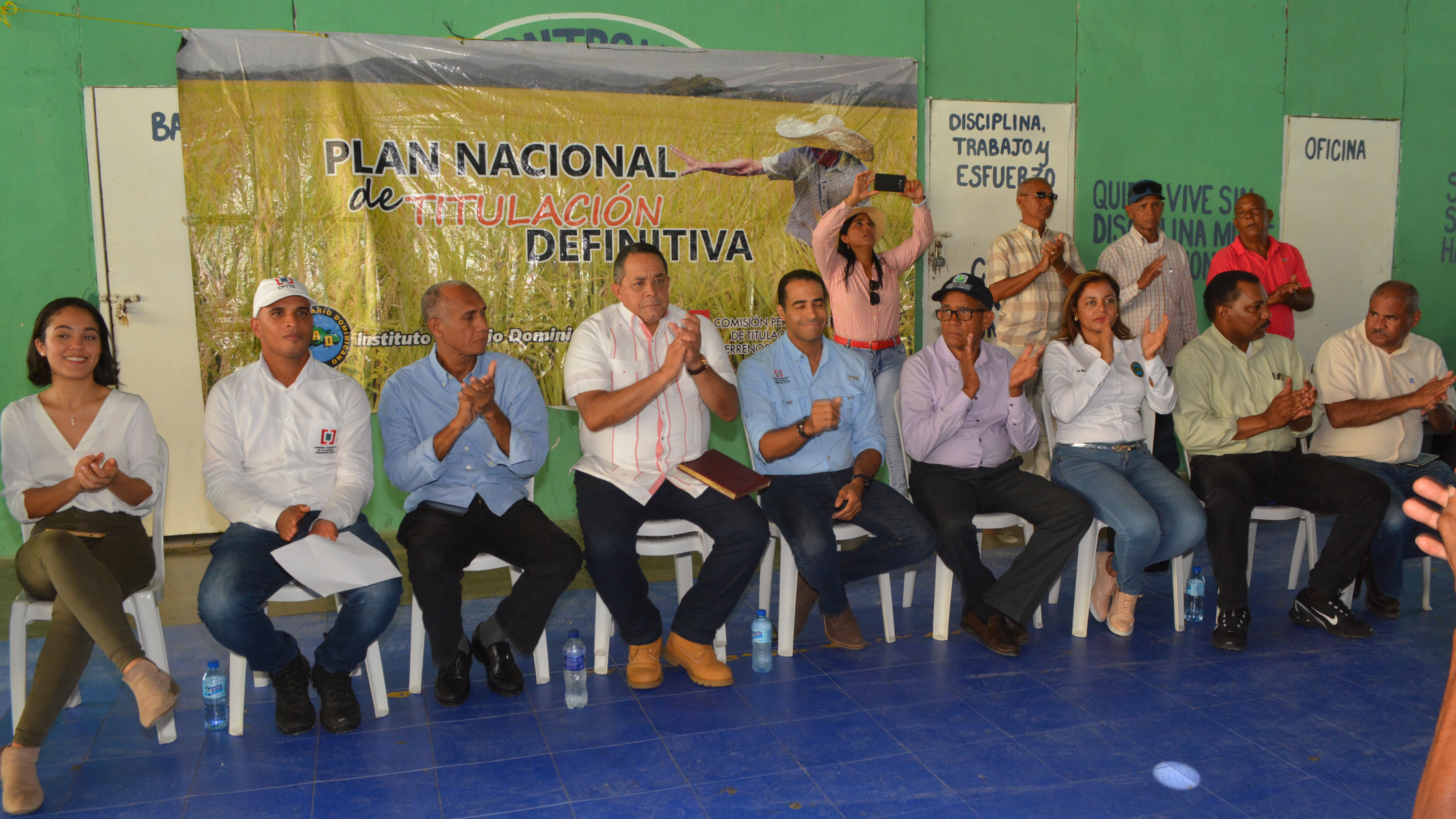 Encuentro encabezado por el director ejecutivo de la CPTTE, José Dantés Díaz, y el director general del IAD, Emilio Toribio Olivo, con agricultores y residentes dueños de parcelas y solares en Vicente Noble.
