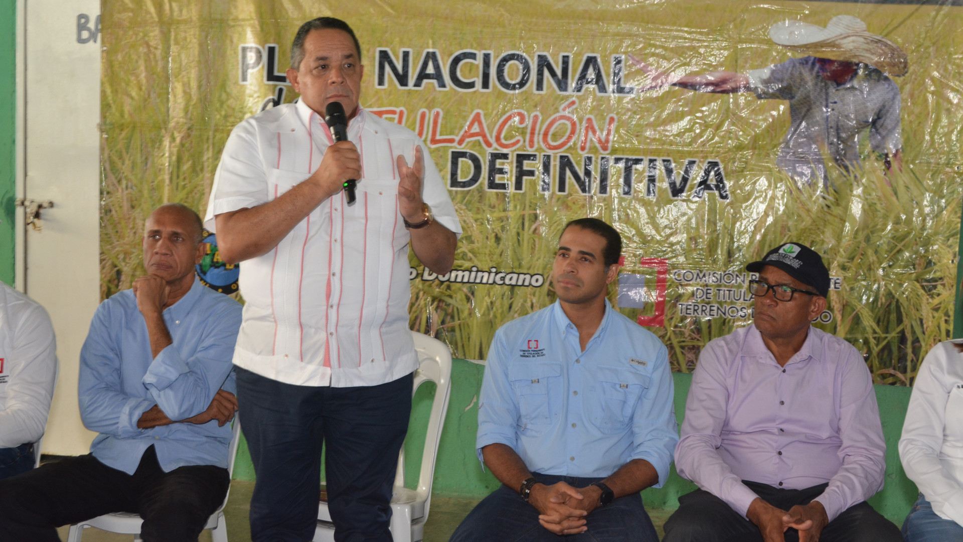Encuentro encabezado por el director ejecutivo de la CPTTE, José Dantés Díaz, y el director general del IAD, Emilio Toribio Olivo, con agricultores y residentes dueños de parcelas y solares en Vicente Noble.