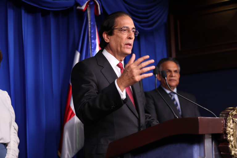 Ministro de la Presidencia, Gustavo Montalvo, durante rueda de prensa en el Salón Orlando Martínez del Palacio Nacional.
