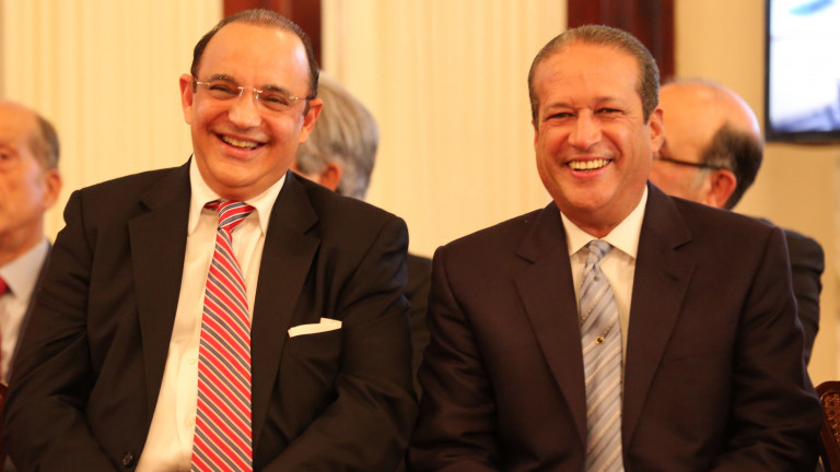 Los líderes políticos, Reinaldo Pared Pérez, presidente del Senado de la República y Secretario General del Partido de la Liberación Dominicana; y Rafael Antún Batlle, presidente del Partido Reformista Social Cristiano, durante la firma del Pacto Educativo.