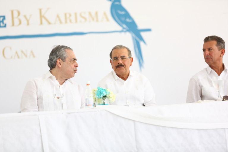 Presidente Danilo Medina y ejecutivos del grupo hotelero internacional Karisma Hotels & Resorts, en Juanillo, Cap Cana, durante el evento.