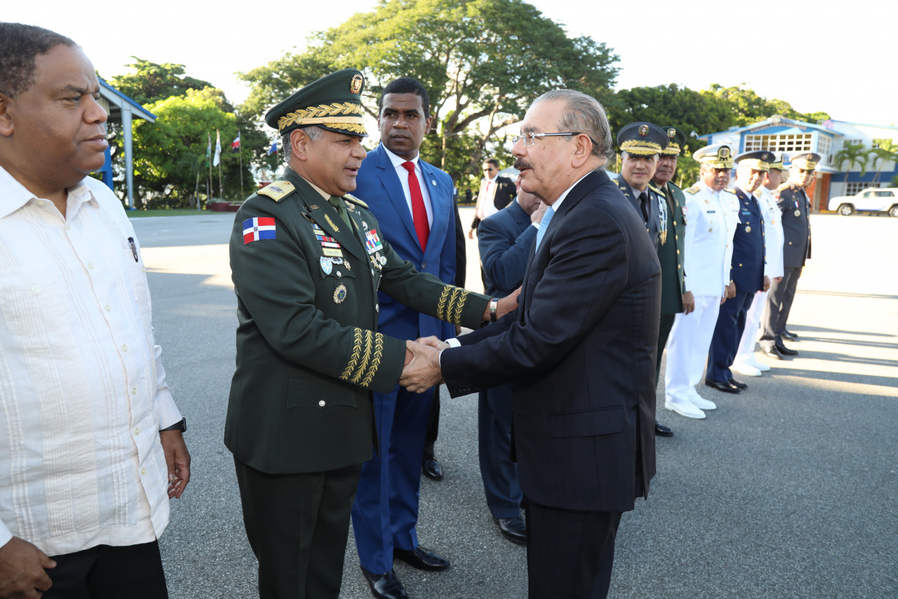 El presidente Danilo Medina saluda al ministro de Defensa, teniente general Rubén Darío Paulino Sem, ERD,, a su llegada al evento, Foto: Presidencia República Dominicana Enlace noticia: presidencia.gob.do/noticias/en-san-cristobal-danilo-medin...