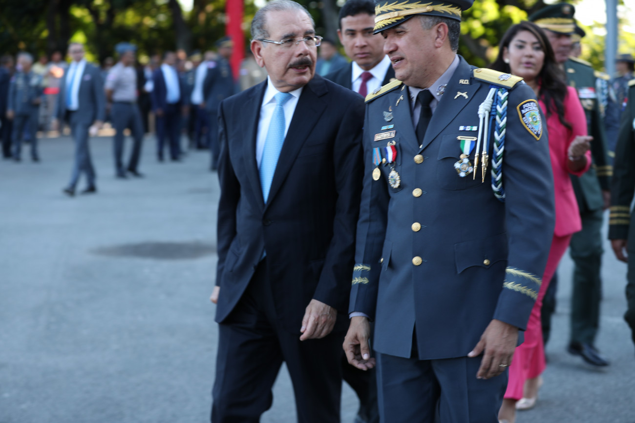 El presidente Danilo Medina acompañado del director de la Policía Nacional, mayor general Ney Aldrin Bautista Almonte.