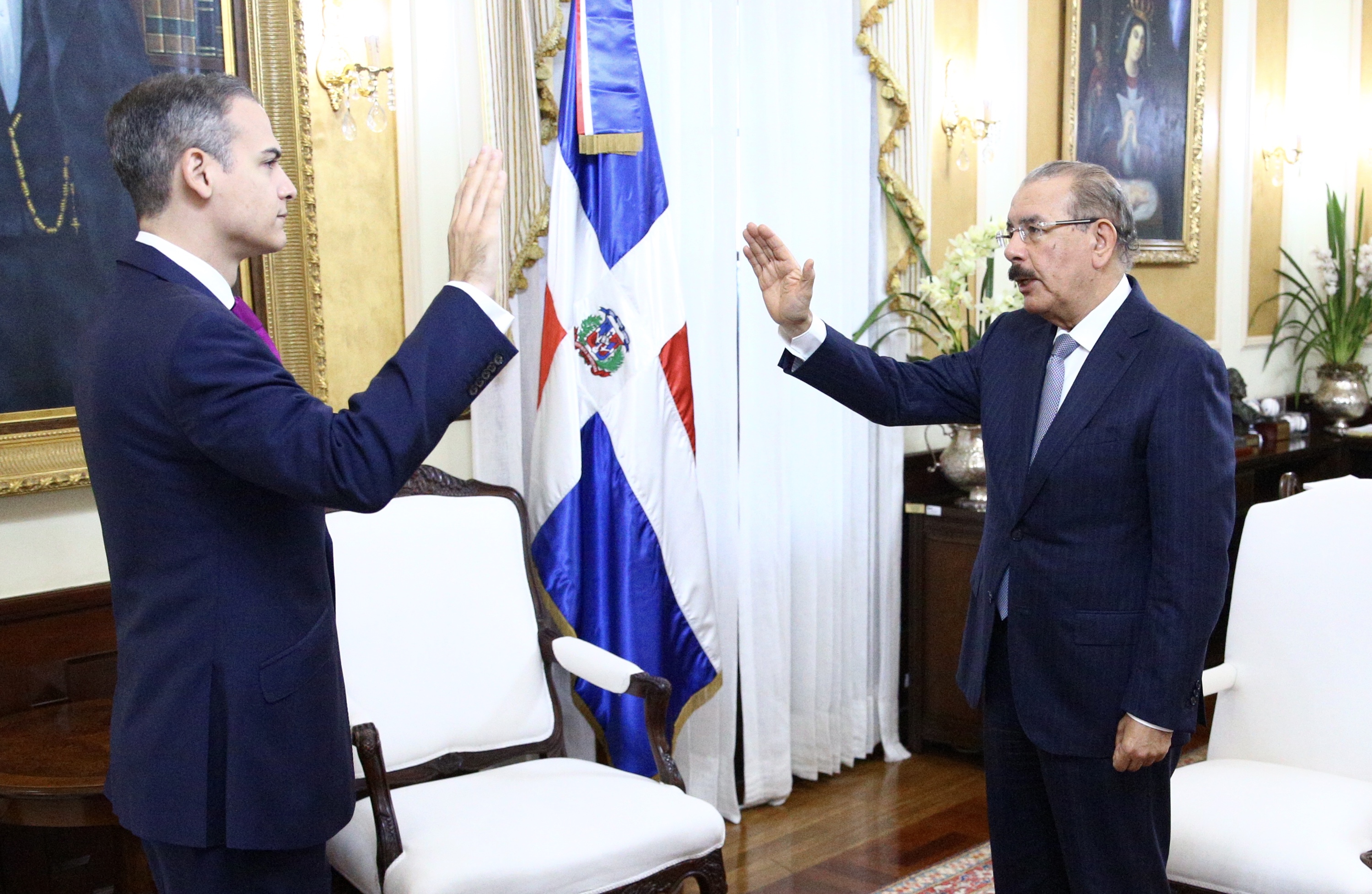El presidente Danilo Medina juramentó a Josué Antinoe Fiallo como representante permanente de la República Dominicana ante la Organización de Estados Americanos (OEA), en acto realizado en el despacho presidencial del Palacio Nacional.