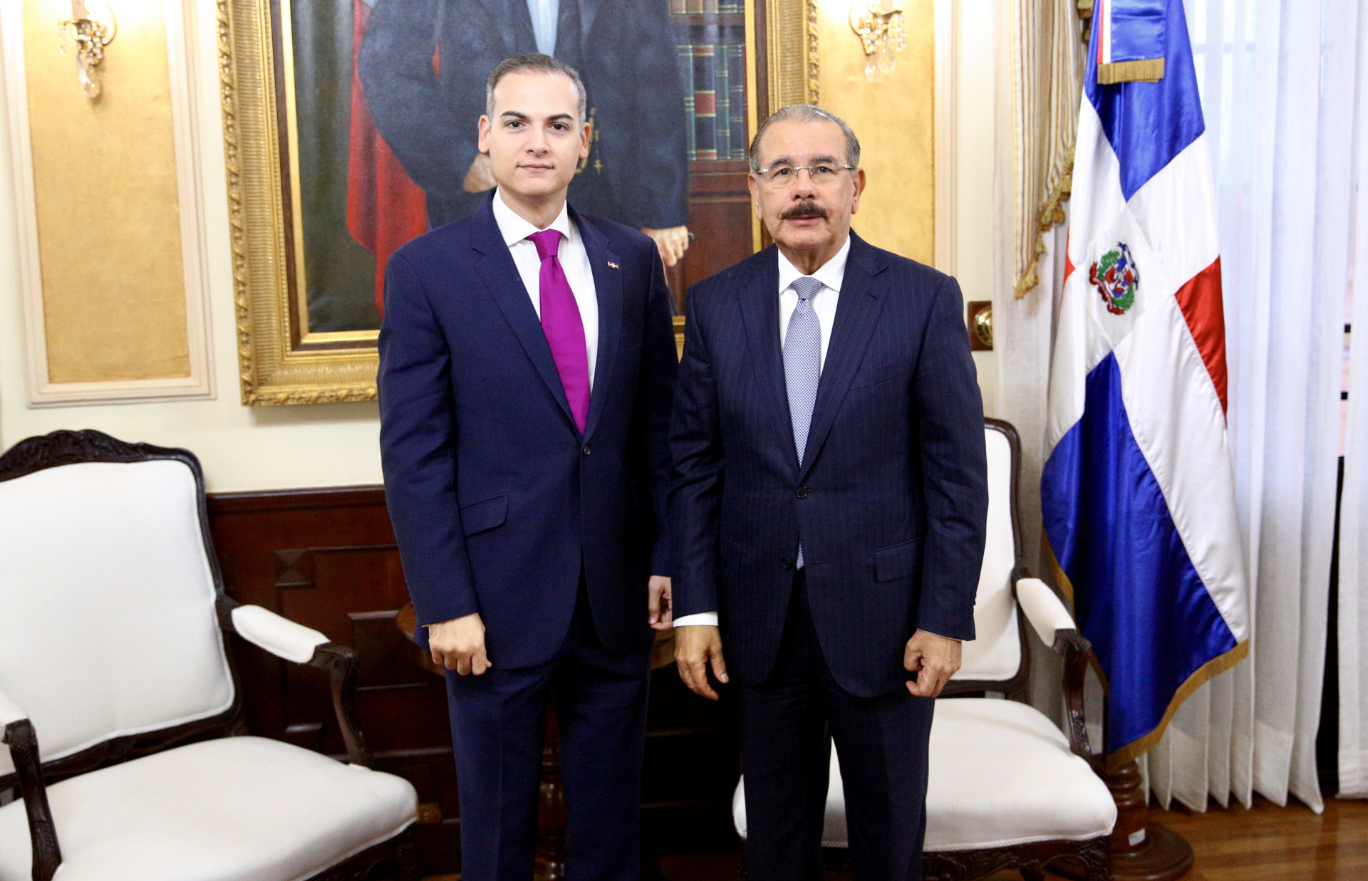 El presidente Danilo Medina con Josué Antinoe Fiallo nuevo representante permanente de la República Dominicana ante la Organización de Estados Americanos (OEA).