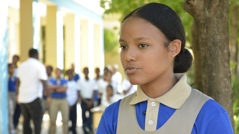 Estudiante de la Escuela Básica Dr. Jose Francisco Peña Gomez en lo Girasoles Semana de Revolución Educativa