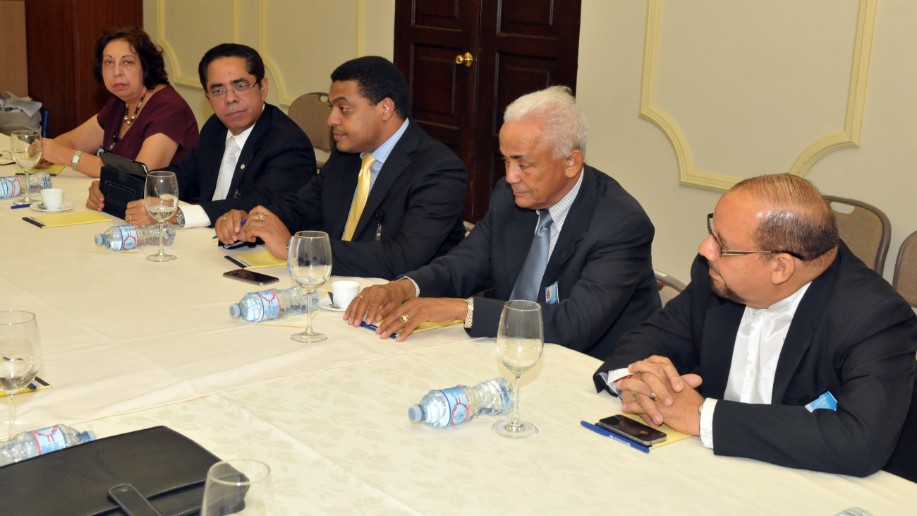 Integrantes de la comisión de Veedurías para Industria y Comercio y Educación Superior, Ciencia y Tecnología, durante encuentro efectuado en el Palacio Nacional, donde se informó que las compras y adjudicaciones públicas se harán con transparencia y con la participación y supervisión de los ciudadanos.