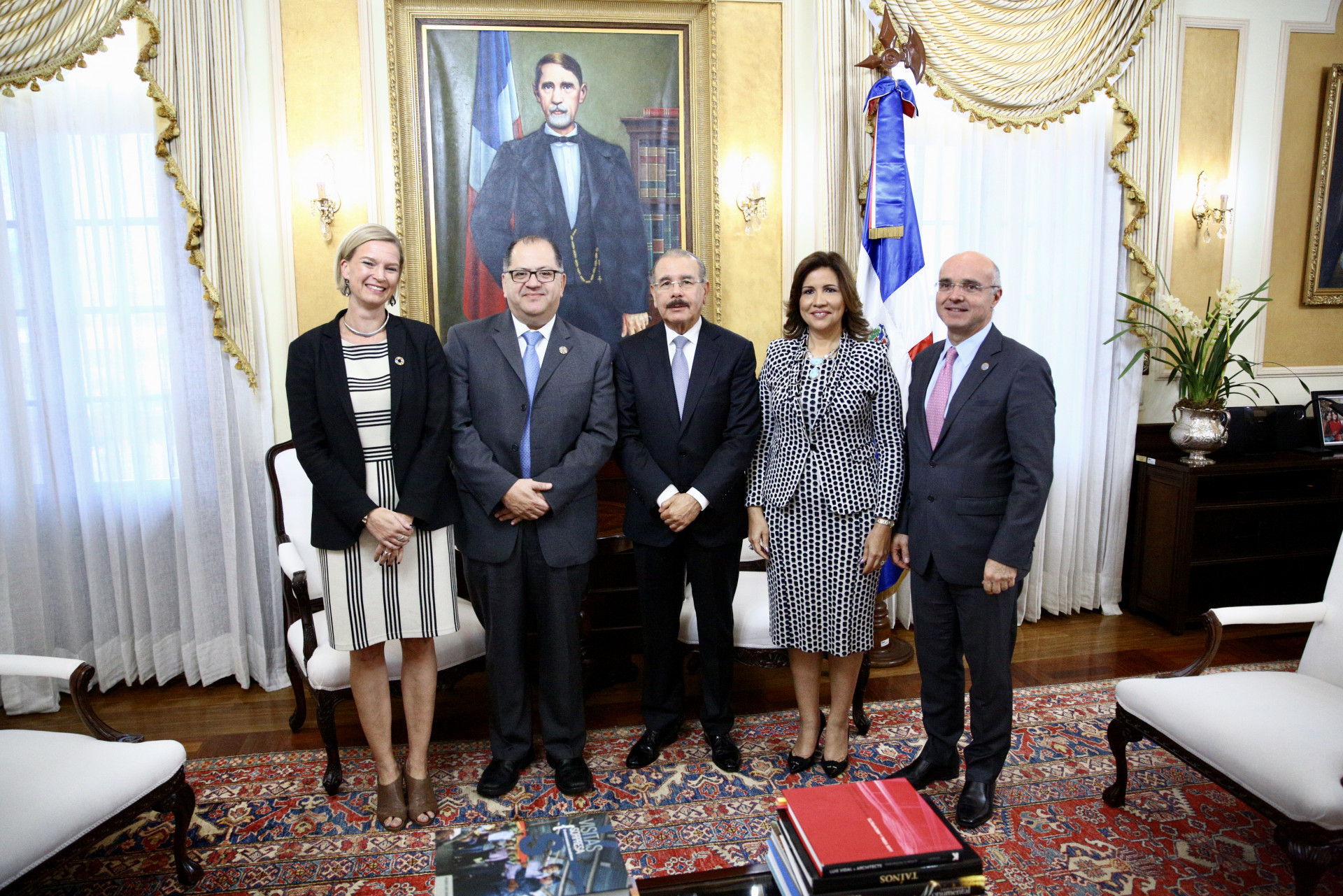 El presidente Danilo Medina junto a Luis Felipe López Calva, director regional para América Latina y el Caribe del PNUD,; la vicepresidenta Margarita Cedeño; el coordinador residente de la ONU en el país, Mauricio Ramírez, y acompañante. Foto: Presidencia República Dominicana Enlace noticia: presidencia.gob.do/noticias/presidente-danilo-medina-reci...