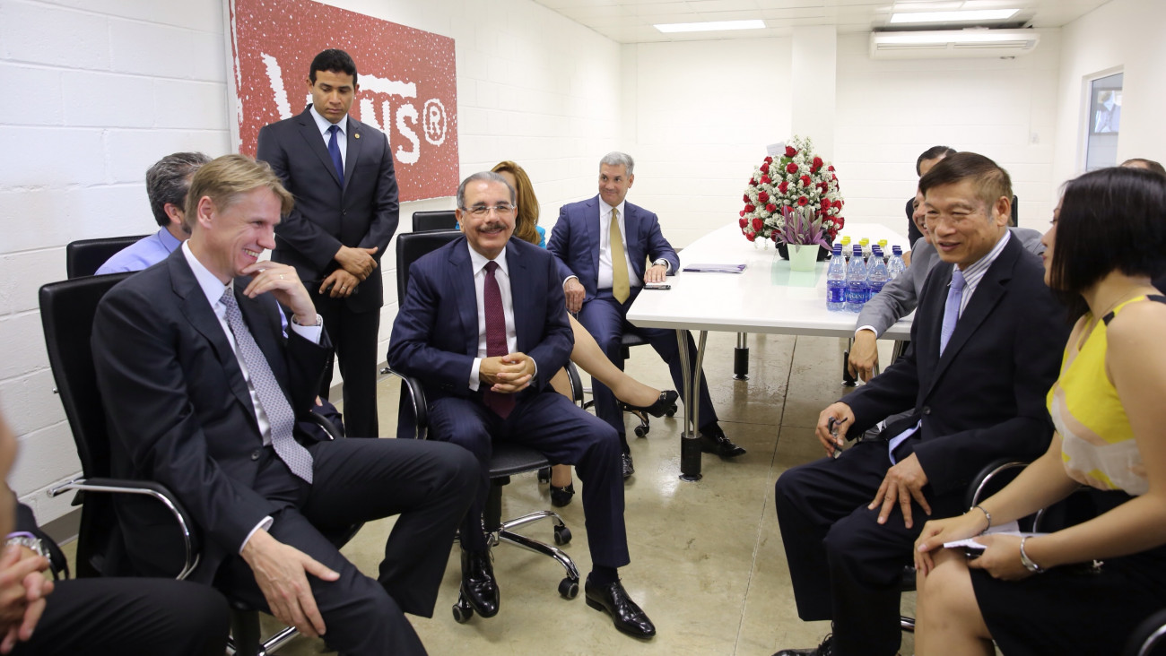 Participación del Presidente de la República, Danilo Medina Sánchez, durante encuentro con ejecutivos del grupo Hong Fu y la empresa VF Corporation, previo al acto inaugural por nueva empresa de zona franca de calzados vulcanizados Sun Jade International, en la ciudad de Santiago.
