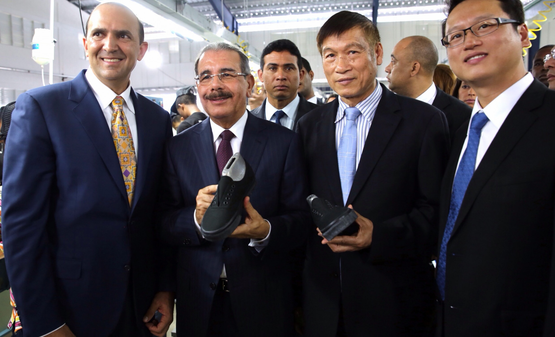 El presidente Danilo Medina recibe explicaciones de los tipos de suelas y calzados deportivos que produce la nueva empresa de calzados, la cual aportará 11,500 empleos en Tamboril Foto: Presidencia República Dominicana Nota de prensa: presidencia.gob.do/noticias/nueva-empresa-de-calzados-apo...