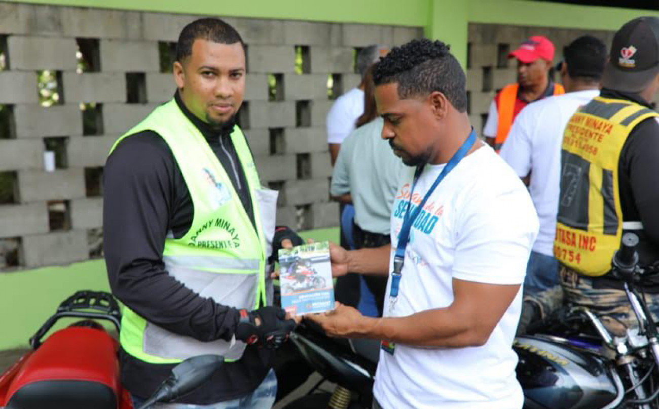 Motociclistas y repartidores a domicilio reciben orientaciones del INTRANT durante la Semana Seguridad Vial