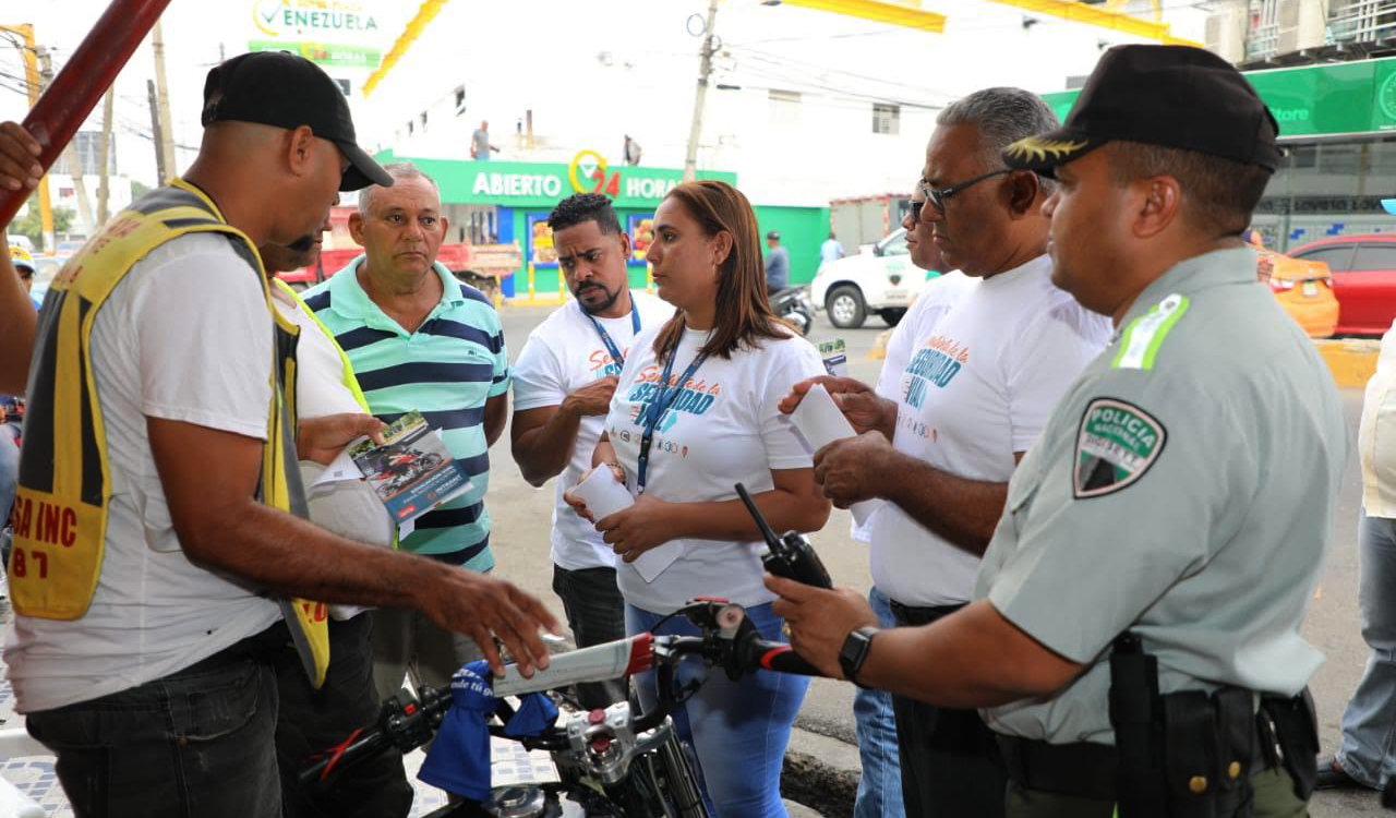 Motociclistas y repartidores a domicilio reciben orientaciones del INTRANT durante la Semana Seguridad Vial