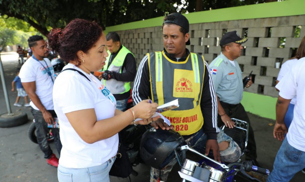 Motociclistas y repartidores a domicilio reciben orientaciones del INTRANT durante la Semana Seguridad Vial