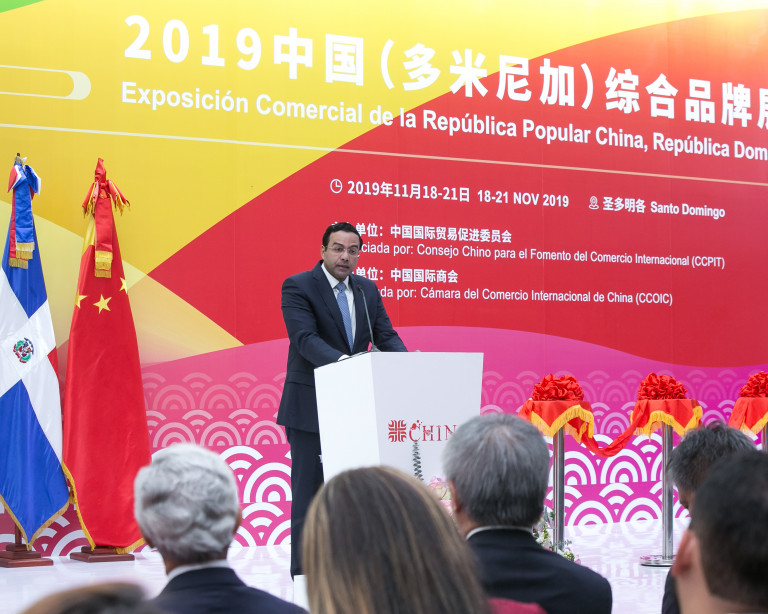 Participación de Marius de León, director del Centro de Exportación e Inversión de la República Dominicana (Cei-RD), durante la inauguración de la exposición comercial de la República Popular China en el país.