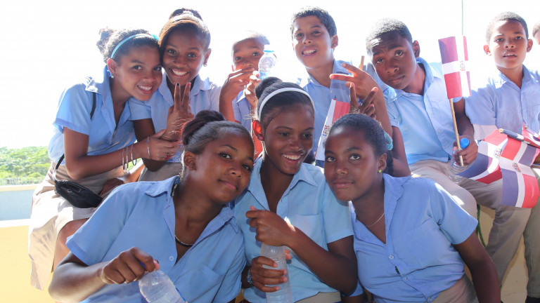 Estudiantes se muestran felices por la entrega de estos planteles escolares, quienes se beneficiarán de laboratorios de ciencias y de Informática, así como de bibliotecas, comedores, cocinas, paneles solares y rincones tecnológicos, entre otros espacios. Foto: Ángel Álvarez Rodríguez/Presidencia República Dominicana Nota de prensa: presidencia.gob.do/noticias/hato-mayor-recibe-74-aulas-en...