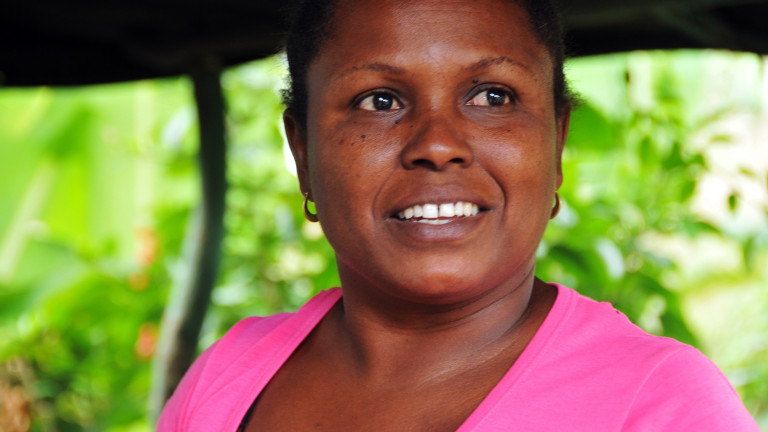 Lely quería ser abogada, trabajó en casas de familia y ahora vende desayuno y comida a 40 obreros que construyen la escuela de Hato Damas. A veces pica hasta 6,000 pesos diarios.