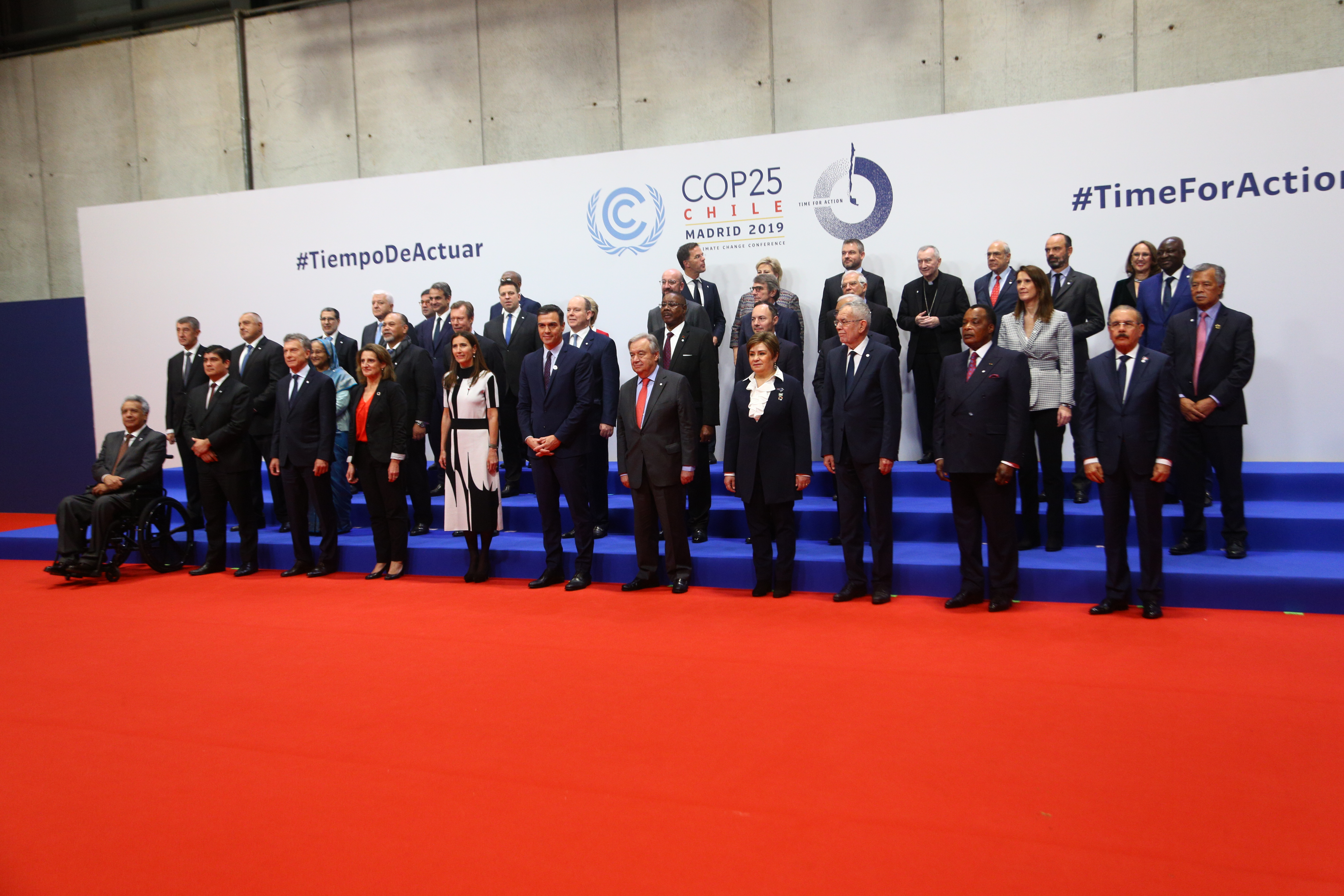 Presidente Danilo Medina y homólogos de varios países participantes, en foto de familia de la ceremonia inaugural de la Conferencia de la ONU sobre el Cambio Climático, COP25, en Madrid, España.