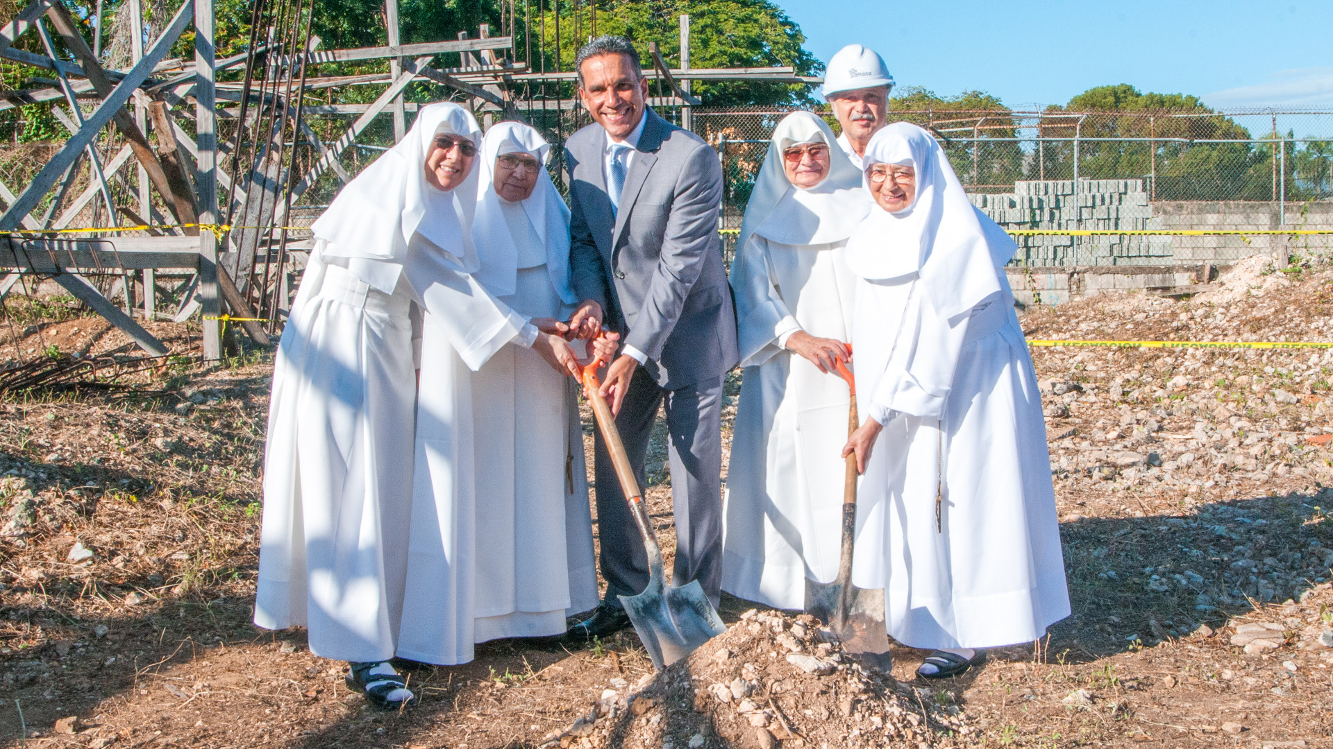 La madre Juliana Bailon Ibañez y Sor María Romero Hernández, directora y subdirectora de la casa hogar, respectivamente, recibieron cheque de manos del viceministro de Producción y Desarrollo Comunitario del Ministerio Administrativo de la Presidencia, Juan Pumarol, para dar inicio a la construcción y ampliación de su iglesia.