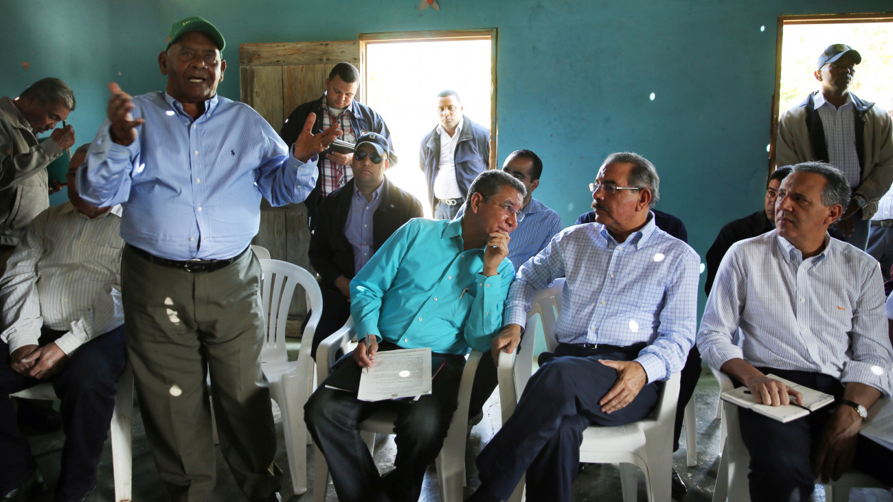 Recorrido del presidente de la República, Danilo Medina Sánchez, durante su visita sorpresa por las comunidades de Higua, El Seibo y Mata Palacio, Hato Mayor, donde se reunió con productores de la zona. Marcial Valera, presidente Asociación El Progreso es uno de los lideres comunitarios participante en el encuentro.
