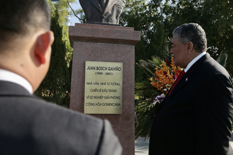 En Vietnam, Miguel Mejía deposita ofrenda floral en Monumento Profesor Juan Bosch y ofrece conferencia sobre política en América Latina