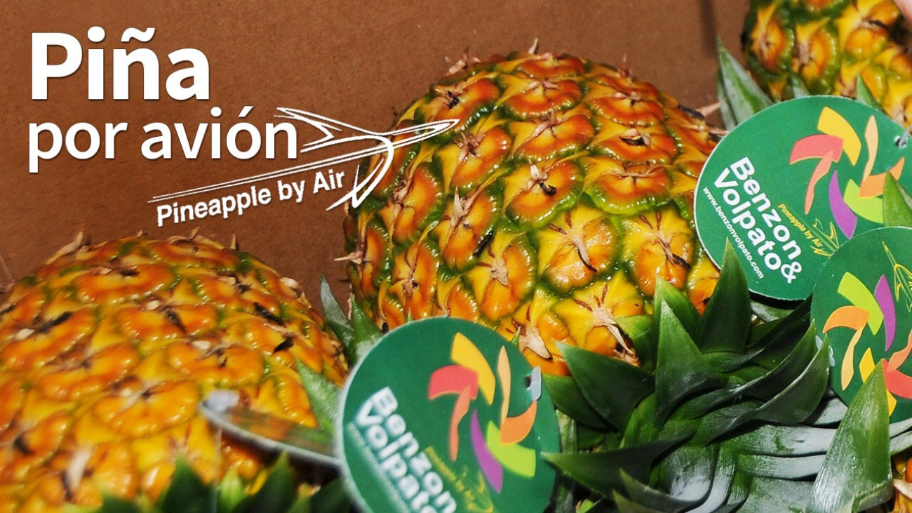 Muestra de piñas cosechadas en la zona de Cevicos, Cotui, para fines de exportación rumbo a Milán, Italia, con ayuda del gobierno y los programas de apoyo dispuestos por el presidente Medina en favor de la producción nacional. La piña que llega por avión -hay que explicar- es más fresca que aquella que llega por barco y los consumidores pagan más por ella. La piña por avión marca el precio y lidera el consumo.