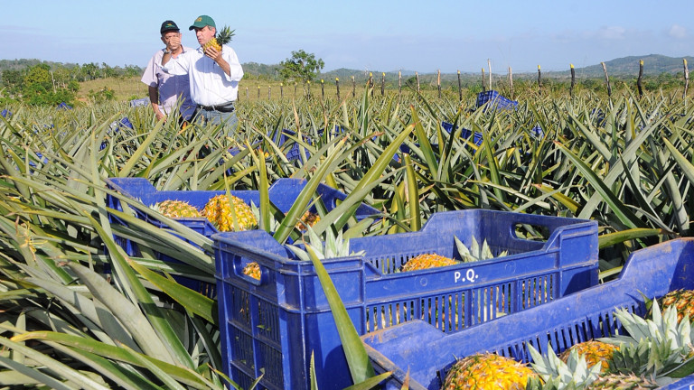 Proceso de recolección de los primeros furgones de piña cosechados en la zona, con ayuda del gobierno y los programas de apoyo dispuestos por el presidente Medina en favor de la producción nacional.