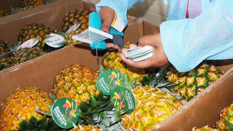 Proceso de empaque de los primeros furgones de piña cosechados en la zona, con ayuda del gobierno y los programas de apoyo dispuestos por el presidente Medina en favor de la producción nacional.