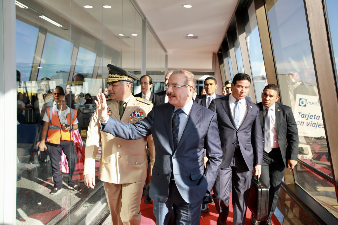 Tras presentar planes concretos e iniciativas para acelerar la acción y alcanzar un mayor nivel de ambición global de cara al cambio climático, el presidente Danilo Medina regresó al país, de su viaje oficial procedente de Madrid, España.